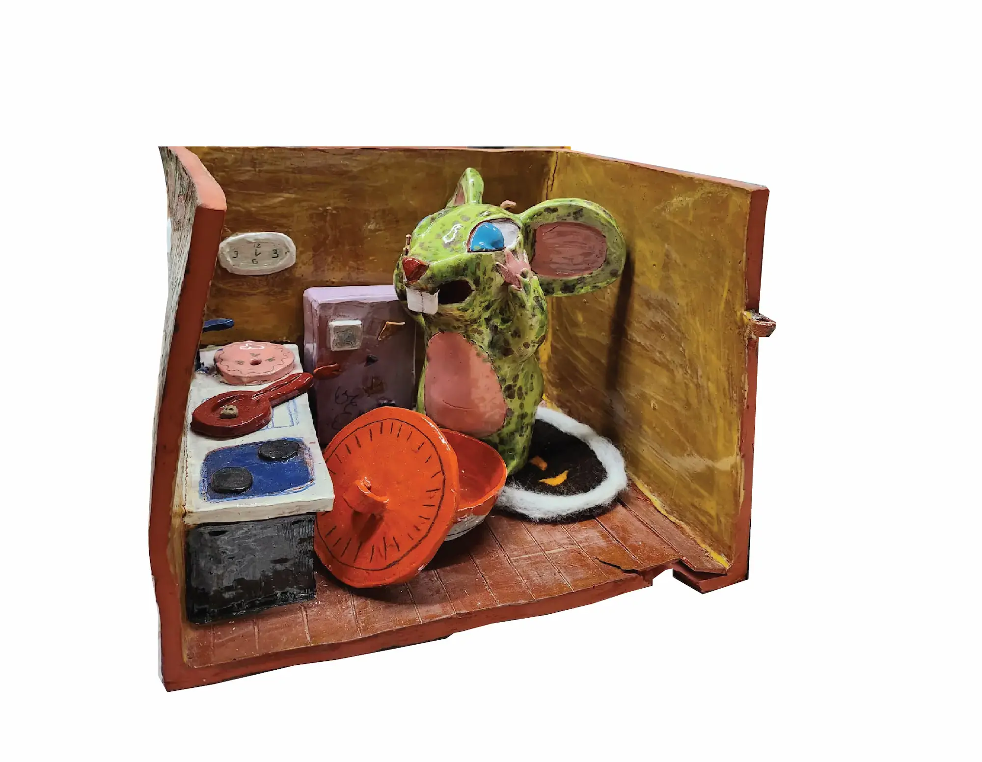Since the second year something that has greatly interested me was how can I illustrate from clay? I really wanted to find a way to communicate both my illustrations and sculptures into one. So that’s how my project 3D to 2D was created. I came up with the idea of a picture book made from clay and wood, but it doesn’t work the way you think!