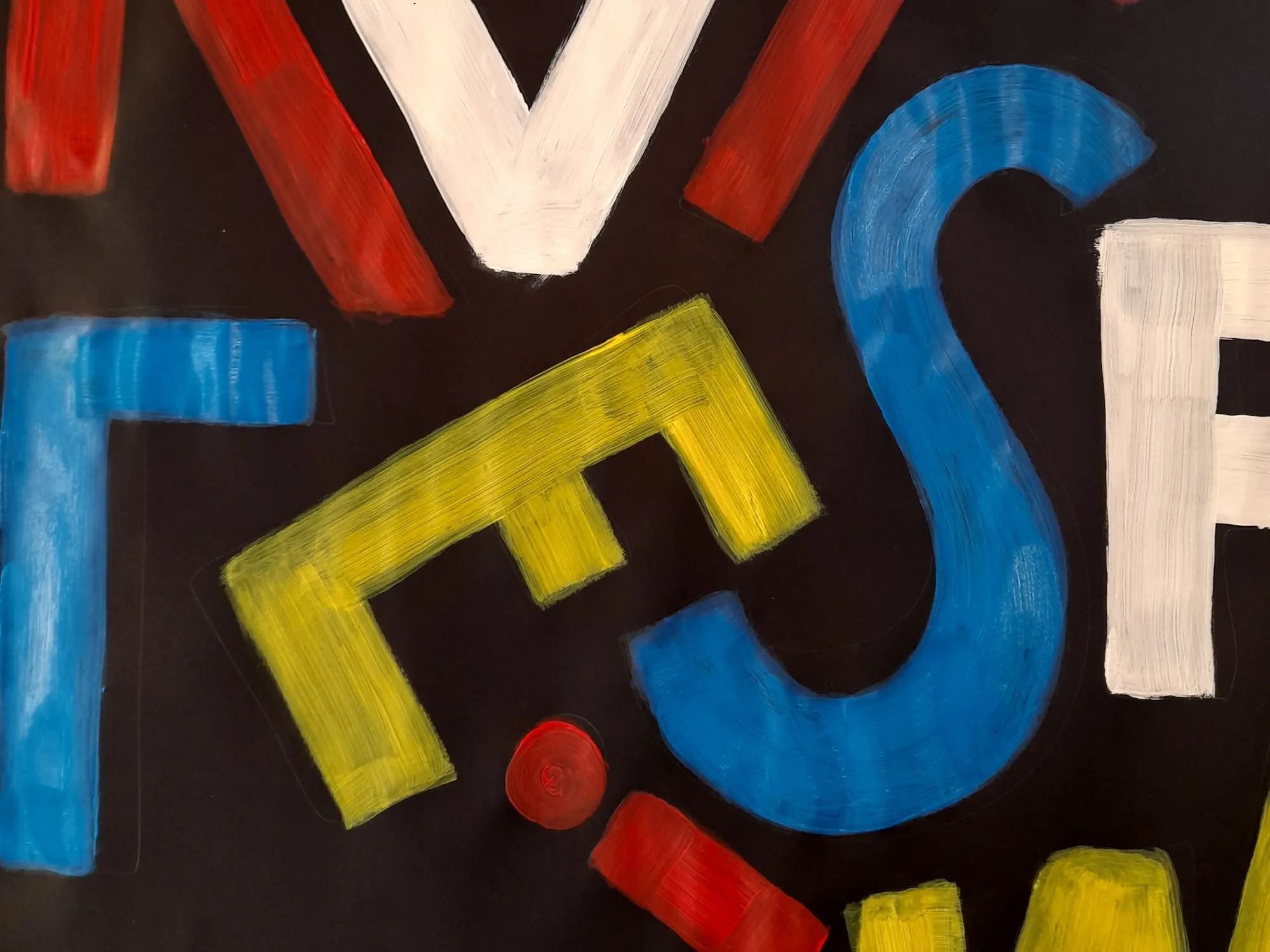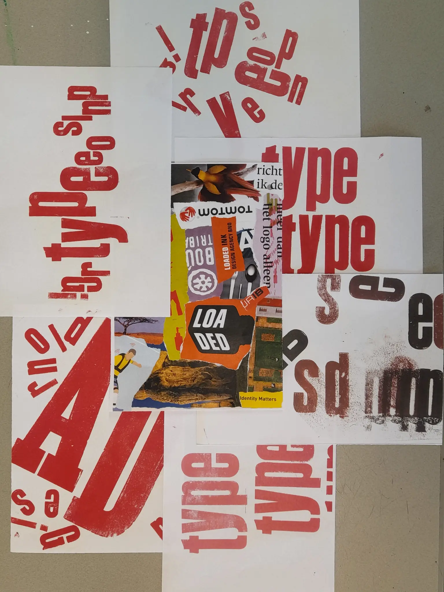 Working on my project at school, I arrived at the following issue: what is the meaning of a design, and when does it lose its meaning? From this point of view, I started working very abstractly and experimentally. I worked in the letterpress, playing with composition and colour. I started working big and expressive, using paint as a major material and trying to lose the idea of planned designing, but rather let the moment and material initiate the outcome of the design. These were not so much to find answer to the aforementioned questions, but rather to create distance to my normal analysis of design, and the usual answer that would, at first glance, come to mind. Normally I would think of an answer or explanation and then work it out practically, but this time I put aside my thoughts and tried to let the practical experiments do the work.