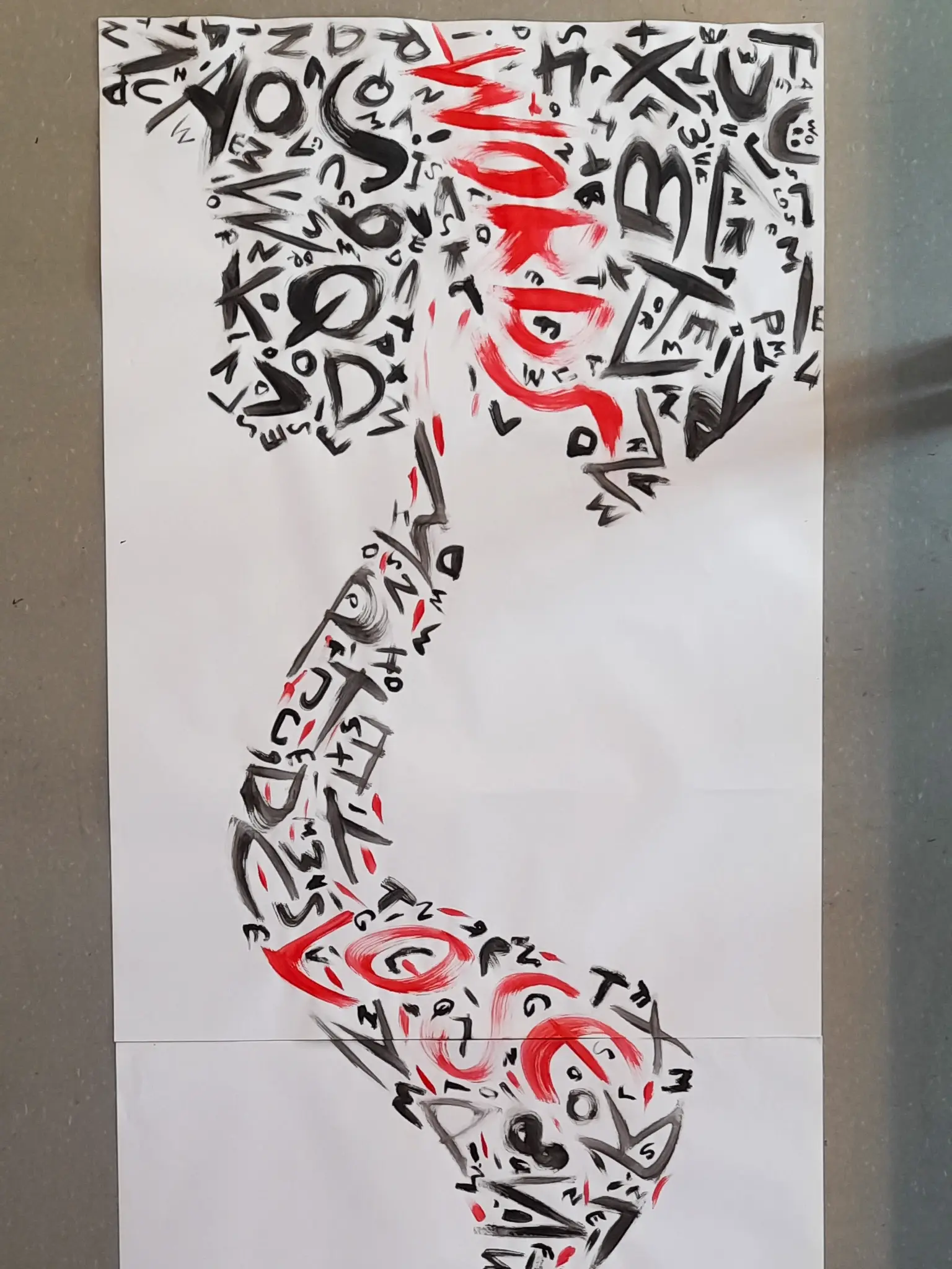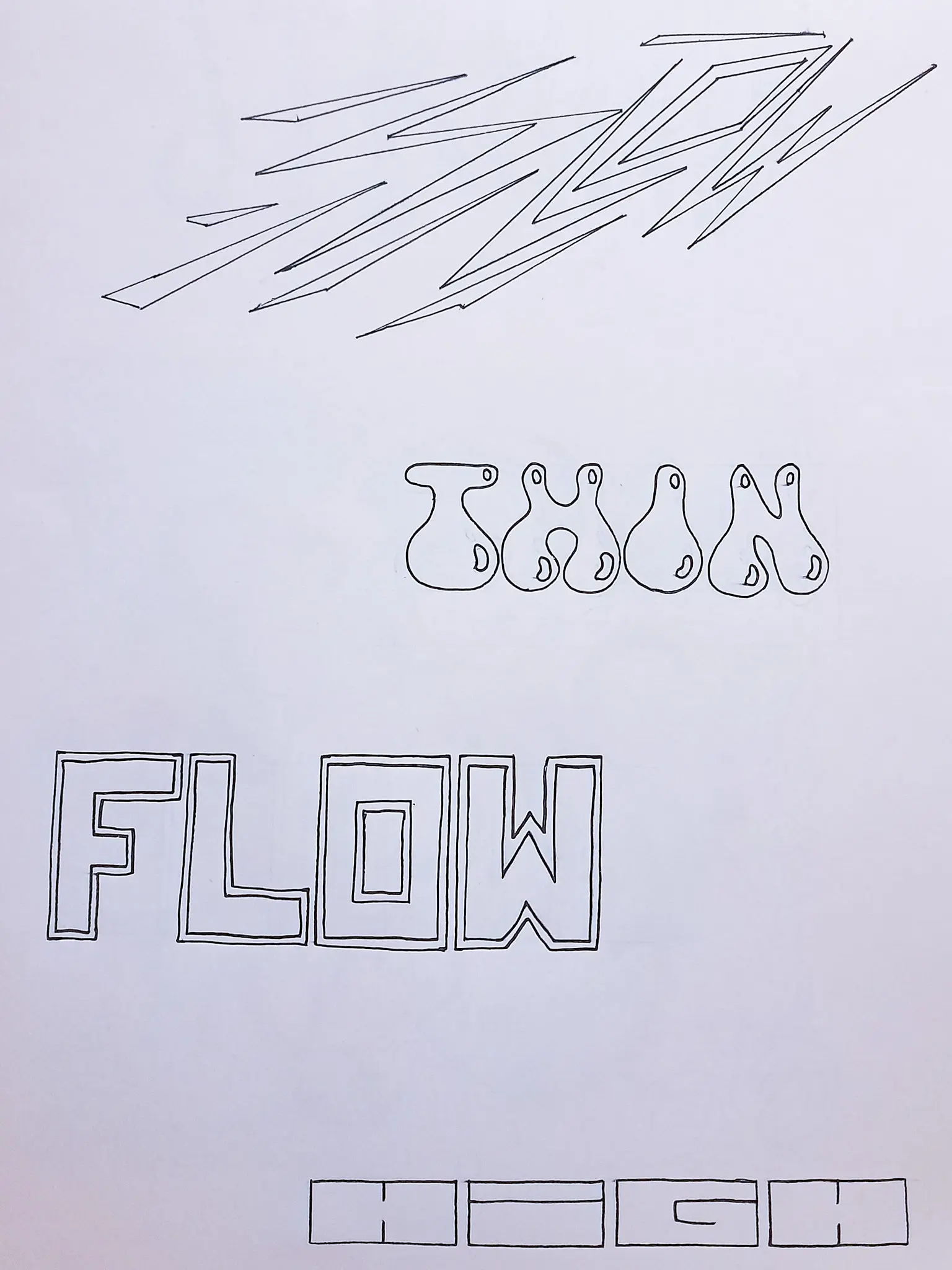 If I looked at the letters and drawings that I made during the experimental phase, I sometimes couldn’t entirely understand or decipher the meaning of it all. But did that signify that the work lost its function? What if I weren’t supposed to read the letters but rather see it as an abstract shape or a form that conveyed a different message? What if letters were just another form in the endless library of shapes? Did they lose meaning? Or did they not have any meaning in the first place?