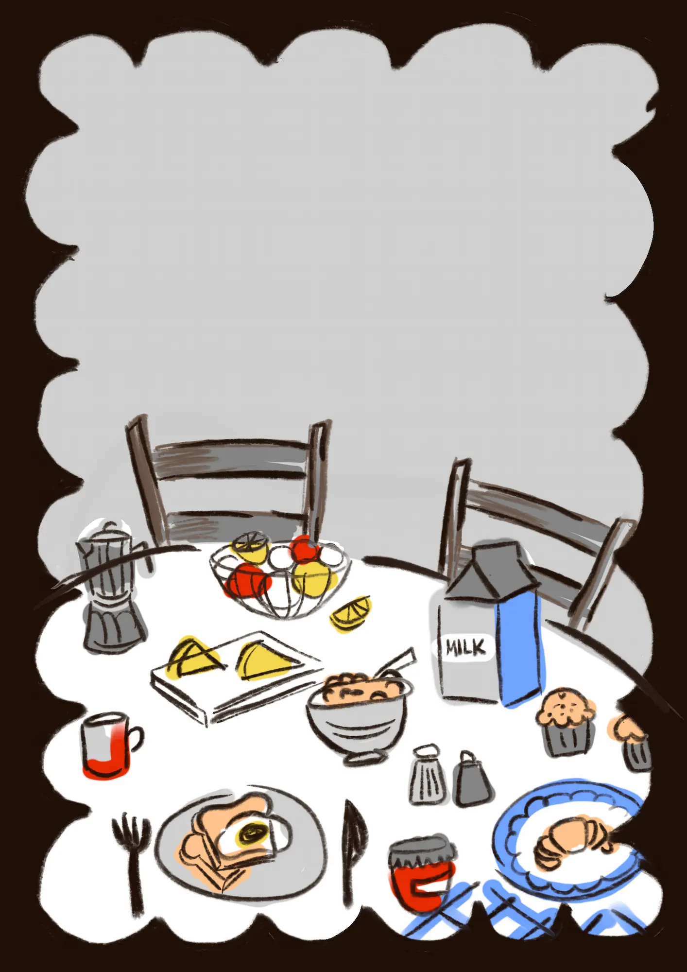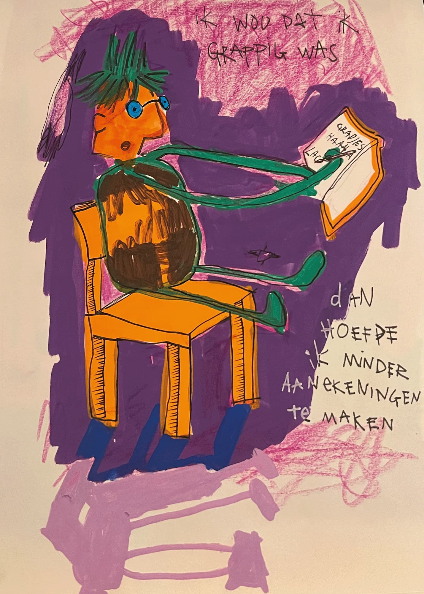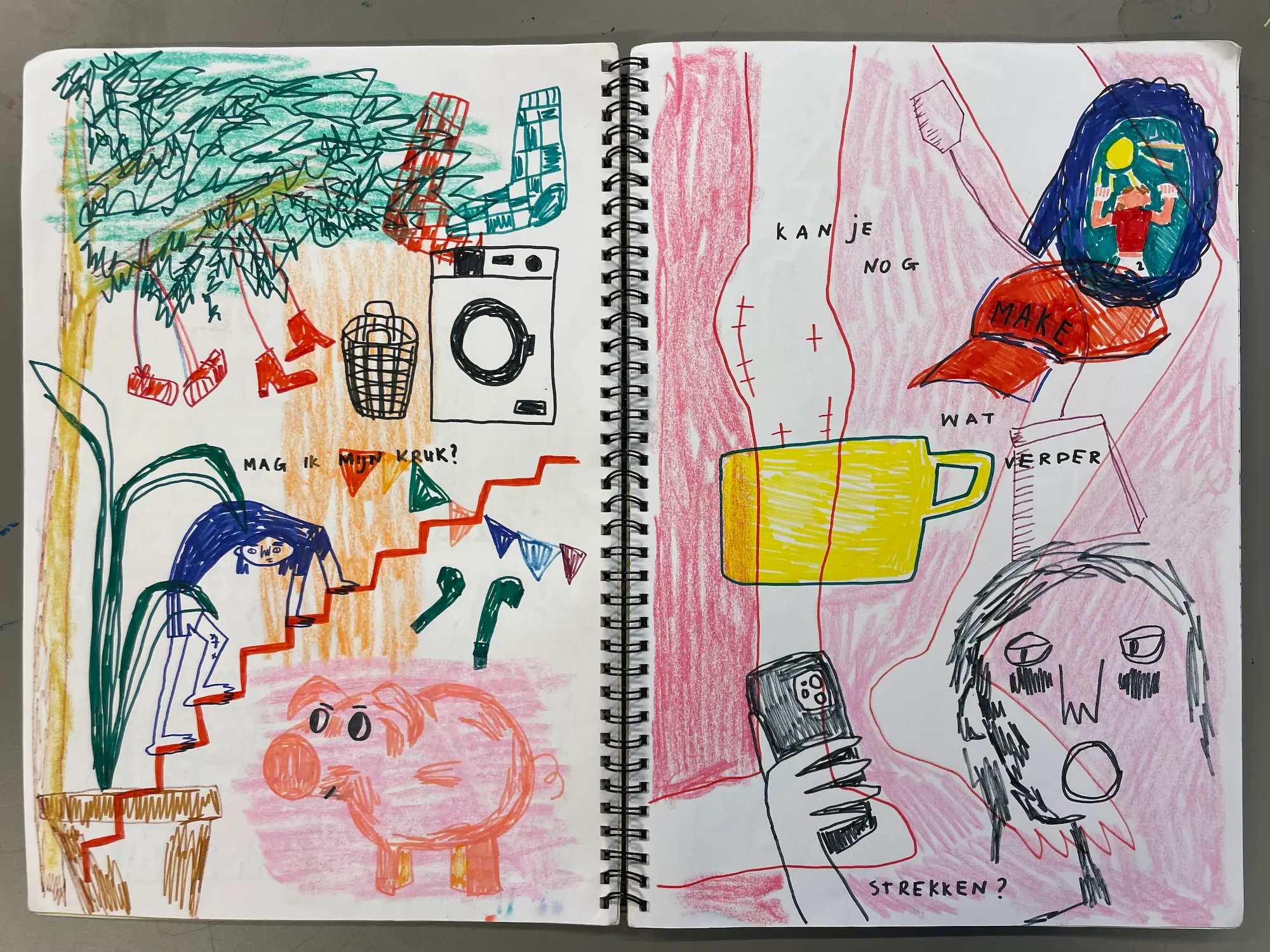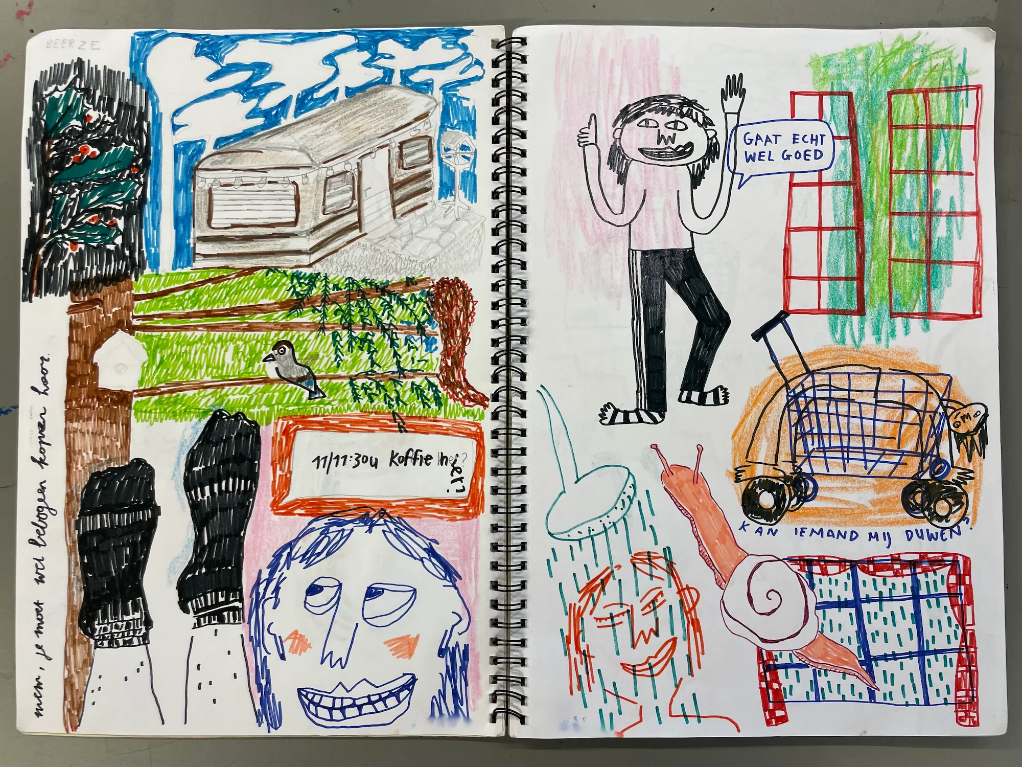 Hoi, my name is Bente van Spijk. I’m from Groningen and have always lived in villages surrounding the city. My interests lie in highlighting the ordinary moments of life and finding the humor in everyday situations, using abstract shapes and bright colors.