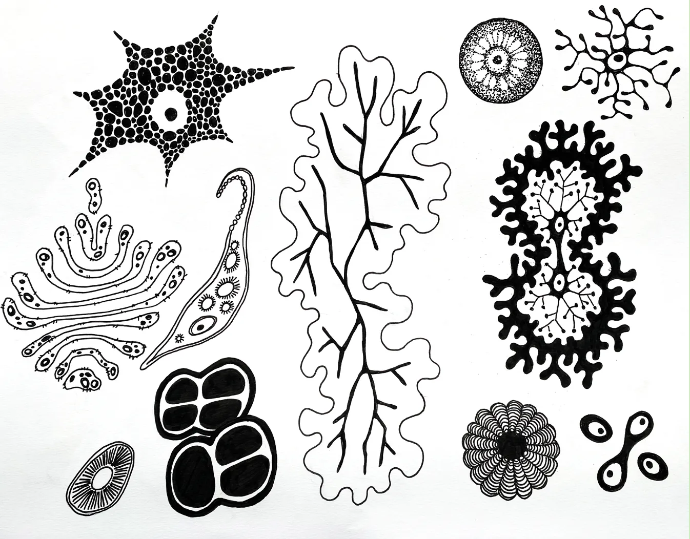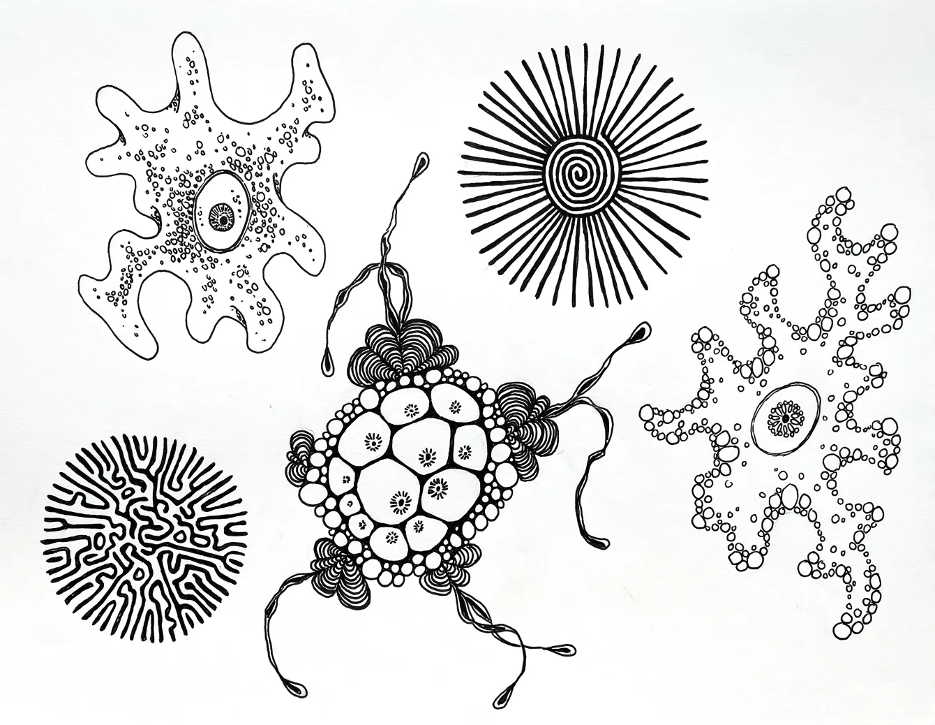 Recently, I’ve been experimenting with incorporating cells into tattoo designs. This concept offers endless creative possibilities. I’ve been inspired by images of microscopic cells and diseases, like those on MicroscopyU, and I’m developing designs based on them. For instance, tattoos of disease cells could serve as powerful symbols—like a cancer survivor wearing a design as a mark of strength. This concept extends to other illnesses, such as COVID-19, Cancer, or even STIs, allowing people to reclaim their experiences with pride and self-acceptance.